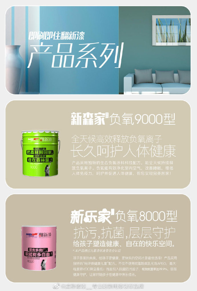 向您推薦威斯諾翻新漆產(chǎn)品系列,能夠?qū)崿F(xiàn)“即刷即住”。高品質(zhì)、多功能凈味墻面漆,不僅能夠凈味,而且超低voc,完全可以即刷即?。徊捎米钚聝粑都夹g(shù),不含芳香劑、遮味劑,可以擺脫異味困擾,刷完就可以搬進新家了。