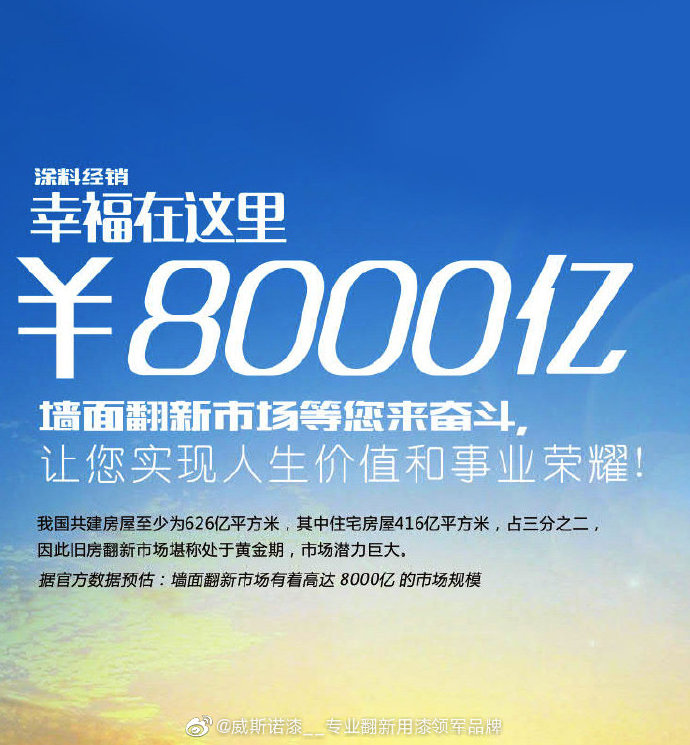 威斯諾漆誠(chéng)招:代理招商加盟,威斯諾,威斯諾漆,威斯諾涂料,威斯諾翻新漆,威斯諾網(wǎng)站,中山涂料,內(nèi)外墻涂料,翻新涂料,涂料招商加盟,翻新漆,藝術(shù)涂料,真石漆,工程漆,木器漆,兒童漆,墻面漆、翻新水漆,涂料廠家、銅墻鐵壁、彩色繽紛 選什么涂料好?