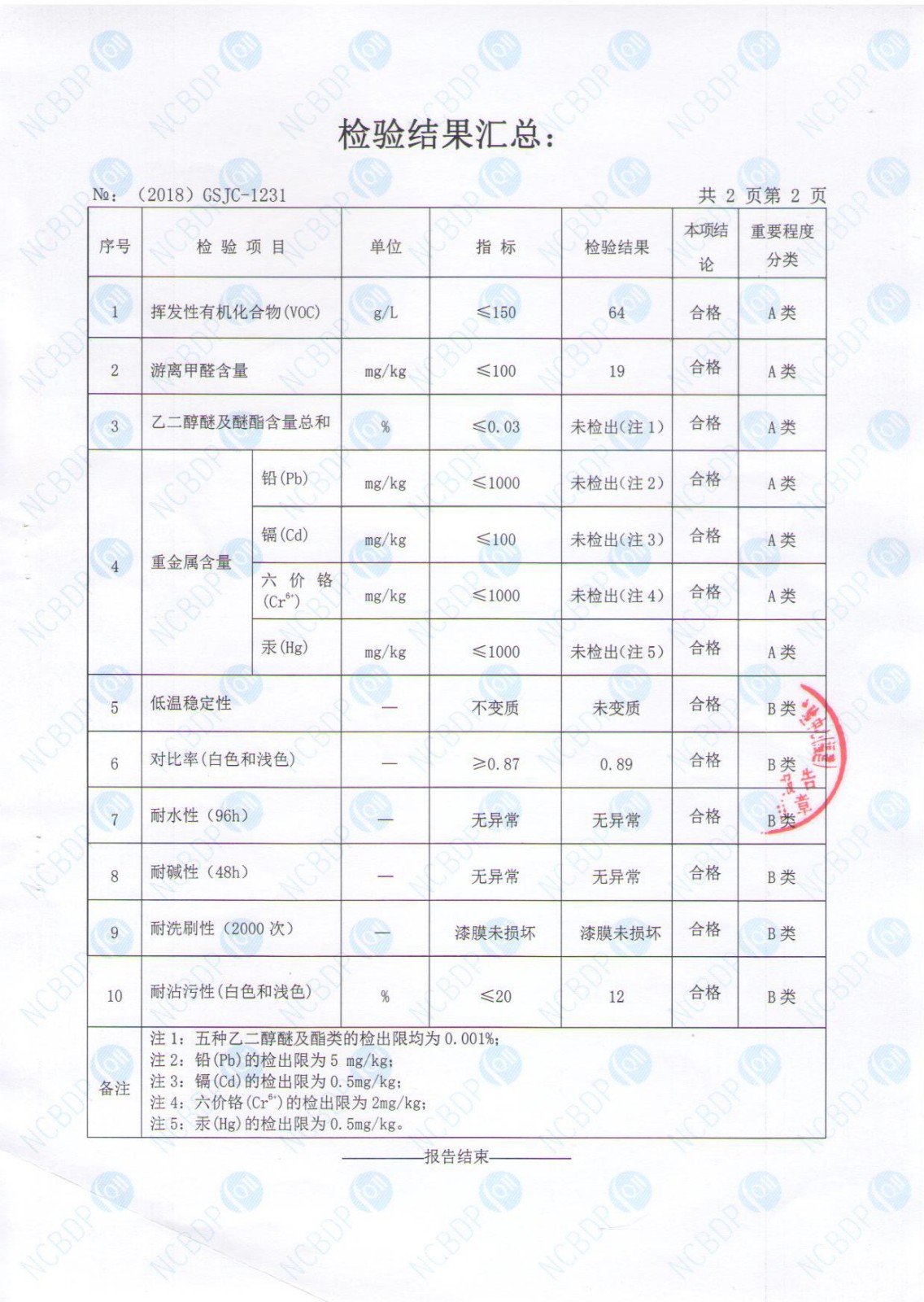 我司在2018年建筑用外墻涂料產(chǎn)品質(zhì)量國家監(jiān)督抽查行動中查驗(yàn)結(jié)果為:合格。