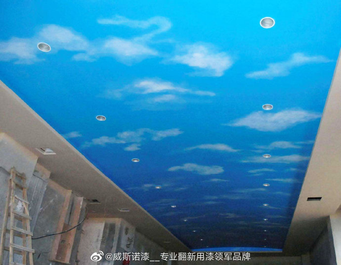 天花吊頂效果:天鵝絨、彩砂、彩釉擦色、三色珠光、藍(lán)天白云等
