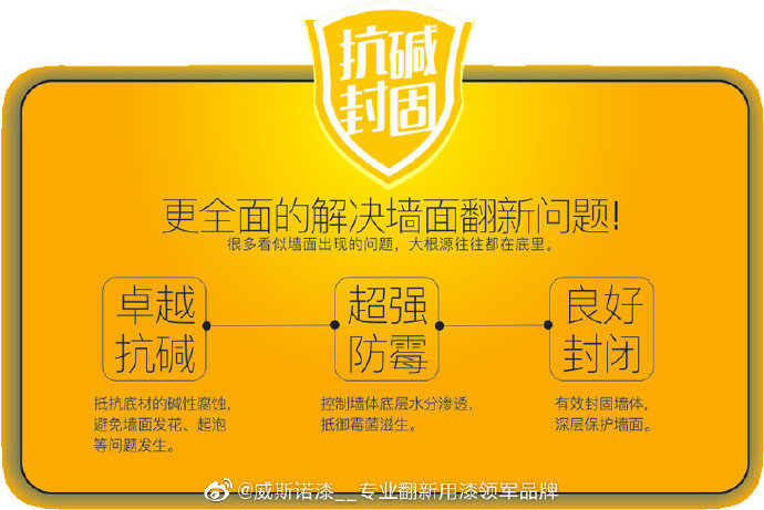 威斯諾黃金甲純凈味全效內(nèi)墻翻新底漆是威斯諾內(nèi)墻翻新面漆的配套產(chǎn)品 。
