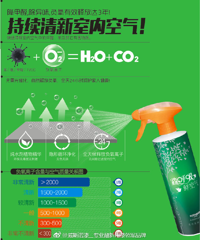 森呼吸負(fù)氧生態(tài)液專為室內(nèi)清新空氣而開發(fā)的專用產(chǎn)品,除甲醛、除異味、負(fù)氧有效釋放長達(dá)3年!持續(xù)清新室內(nèi)空氣!快速清除室內(nèi)空氣中甲醛、笨及其他有害物質(zhì)。