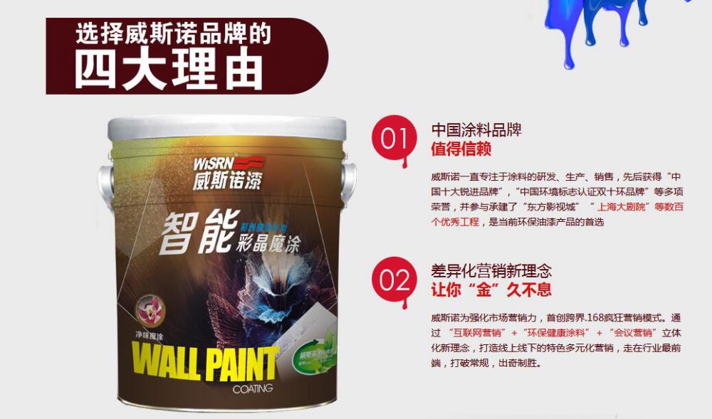 威斯諾質(zhì)量最好的涂料品牌企業(yè)文化企業(yè)精神:誠信,積極,創(chuàng)新,拼搏,務(wù)實(shí)企業(yè)目標(biāo):打造完美,創(chuàng)建涂料行業(yè)第一品牌經(jīng)營理念:誠信第一、質(zhì)量第一、客戶第一、服務(wù)第一、...